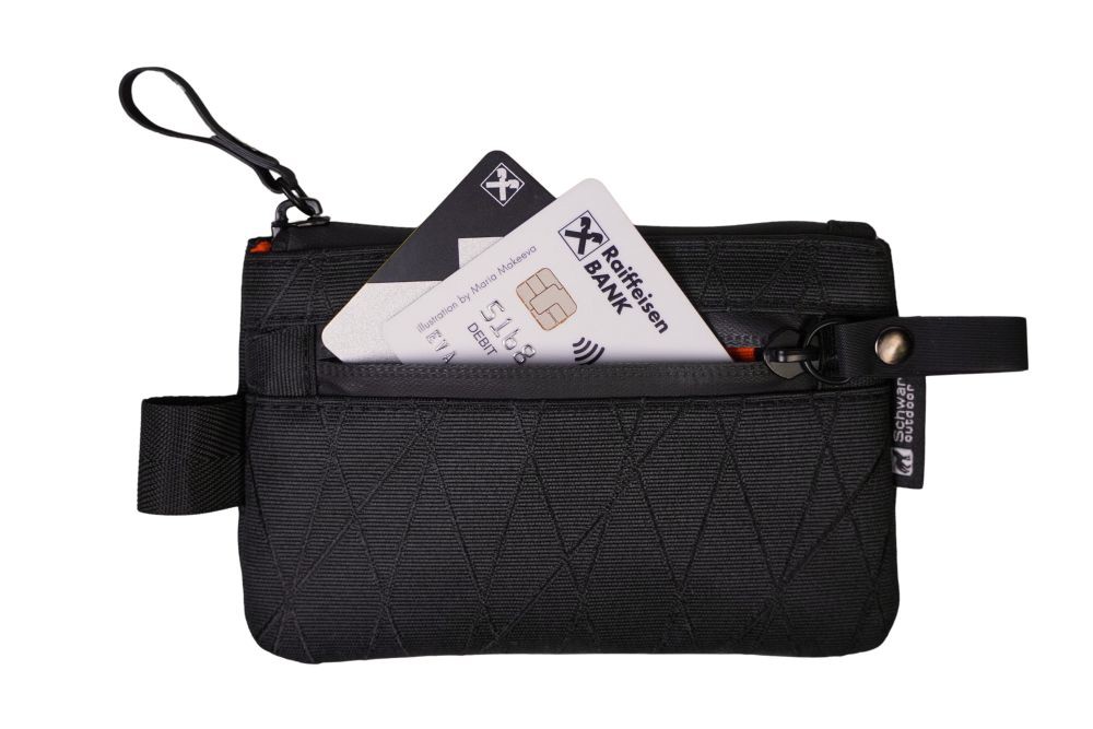 Kleines Schwarzwolf outdoor Reiseetui für Accessoires, Ausweispapiere, Geld oder Kreditkarten, die Sie bei Ihren Unternehmungen zu schätzen wissen. Die Tasche hat einen RFID- Schutz und enthält eine Haupttasche mit Reißverschluss und eine Seitentasche mit Reißverschluss. Sie besteht aus einem speziellen Gewebe mit erhöhter Abriebfestigkeit und hat wasserdichte Reißverschlüsse. Verpackt in einer Schwarzwolf outdoor Geschenkbox. Material: Nylon-Verbundstoff, 60 % Nylon + 40 % Polyester, 240 g/m2. Abmessungen: 13 × 8,5 cm.