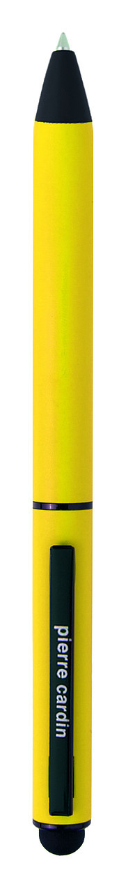 Moderner Dreh-Kugelschreiber im Aluminiumgehäuse mit griffiger „Soft Touch“ Oberfläche. Das Schreibgerät ist in vielen modischen Farben erhältlich, verziert mit schwarzen Details und kann auch als Touch Pen für Tablets oder Smartphones genutzt werden. Der Kugelschreiber hat eine Mine in der Schreibfarbe Blau, Minenstärke 0,7 mm. Verpackt in einer Pierre Cardin Box, versendet mit Echtheitszertifikat.Empfohlene Veredelungstechnik: Lasergravur L1, UV DruckMaximale Veredelungsgröße: 40 × 6 mmAbmessungen:Kugelschreiber: O 1 × 14 cmVerpackung: 5,5 × 15,5 cmKartoneinheit: 60 Stück