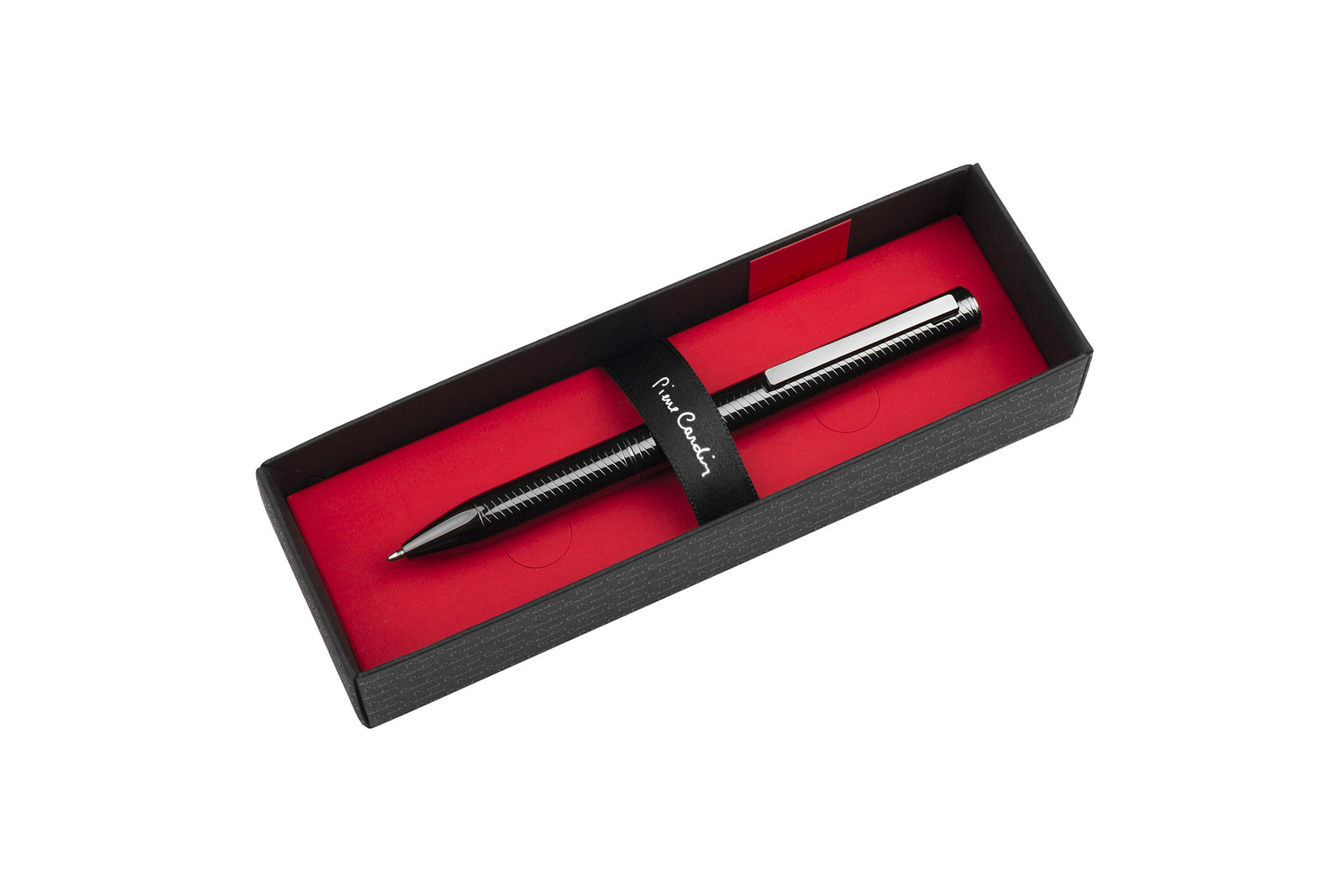 Luxus-Metallkugelschreiber Pierre Cardin im eleganten Gunmetal-Design mit Drehmechanismus. Das Gehäuse des Stiftes ist mit einer kreativen Gravur verziert und enthält eine hochwertige 1 mm Mine in der Schreibfarbe Blau und eine schwarze Ersatzmine. Verpackt in einer Pierre Cardin Luxus Box, versendet mit Echtheitszertifikat.Empfohlene Veredelungstechnik: Lasergravur L1Maximale Veredelungsgröße:30 × 2 mm (auf dem Clip)Abmessungen:Kugelschreiber: O 1,1 × 13,9 cmVerpackung: 17,5 × 5,5 × 3,5 cmKartoneinheit: 20 Stück