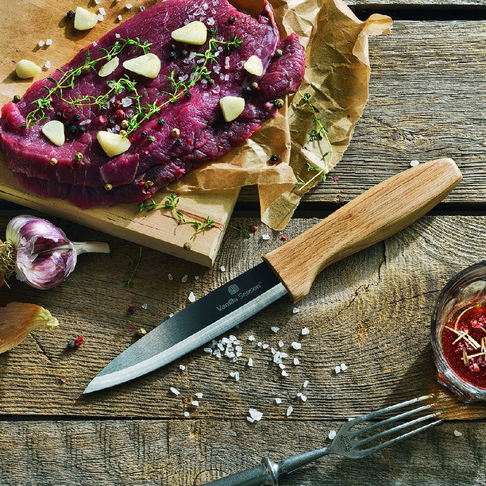 Der unentbehrliche Helfer in jeder Küche,ein Keramik – Luxus – Messer mit Holzgriff.Die geruchs- und geschmacksneutraleKeramikklinge überzeugt durch ihre Schärfe undHaltbarkeit. Die Keramikschneide lässt Enzymeund Vitamine der verarbeiteten Lebensmittelim Produkt. Verpackt in einer Vanilla SeasonGeschenkbox.Empfohlene Veredelungstechnik: Lasergravur L1(Klinge), CO2 Lasergravur L2 (Holzgriff)Maximale Veredelungsgröße: 25 × 10 mmAbmessungen: Messer:Griff 12 cm / Klinge 13,1 cmVerpackung: 29,5 × 2,5 × 8 cm