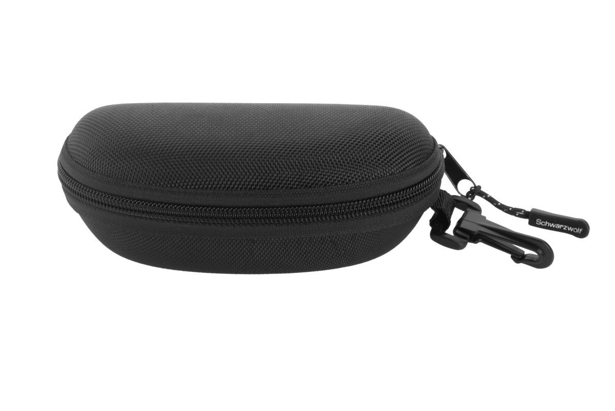 Polarisierte Schwarzwolf outdoor Sport-Sonnenbrille mit farbigen Gläsern. Die Sonnenbrille ist in schwarzer Farbe mit Schwarzwolf-Logo auf den Brillenbügeln. Die Linsen haben einen UV400-Schutz. Sie wird in einem schwarzen Mikrofaserbeutel und einem praktischen schwarzen Hartschalenetui mit Reißverschluss geliefert, welches ein weißes Mikrofaser-Reinigungstuch, das für die Sublimation geeignet ist, enthält. Verpackt in einer Schwarzwolf outdoor Geschenkbox. Abmessungen: Mikrofaserbeutel 8,5 × 17,6 cm, Etui 16,5 × 7,5 × 6,5 cm, Reinigungstuch 15 × 18 cm.