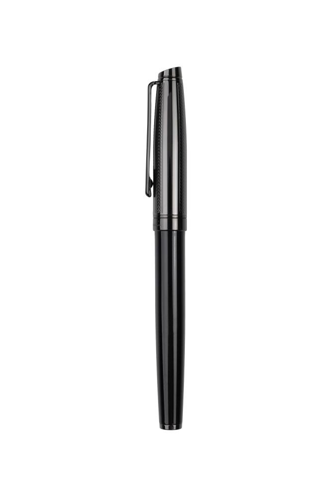 "Pierre Cardin Luxus-Schreibgeräte in elegantem Design. Die Stiftgehäuse sind in glänzendem Schwarz gehalten, die strukturierten Oberteile in Gunmetal. Der Kugelschreiber hat einen Drehmechanismus, die Spitze des Rollers ist durch eine Kappe geschu¨tzt. Der Rollerball enthält eine deutsche Schmidt-Patrone in Blau mit 0,6 mm Spitze, der Kugelschreiber eine blaue Qualitätsmine mit 1 mm Spitze und der Fu¨llfederhalter eine blaue Standardpatrone. Rollerball und Kugelschreiber werden mit einer schwarzen Ersatzmine geliefert. Verpackt in einer Pierre Cardin Luxus Box, versendet mit Echtheitszertifikat.Empfohlene Veredelungstechnik: Lasergravur L1Maximale Druckgröße: 30 × 5 mmAbmessungen: Kugelschreiber 1,4 × 13,9 cm, Tintenroller 1,4 × 13,9 cm, Füllfederhalter 1,4 × 13,9 cm, Verpackung 18,5 × 3,1 × 7,5 cm