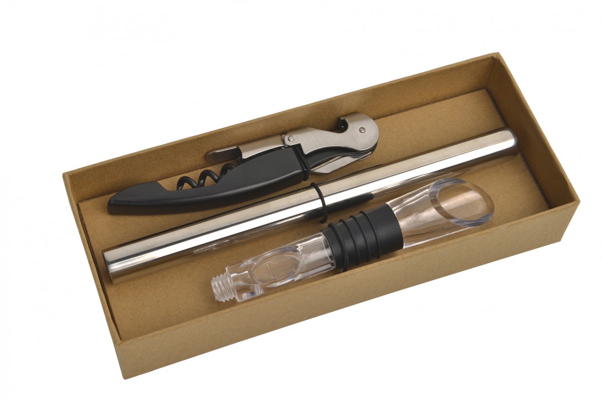 Praktisches Set aus einem innovativen Weinkühlermit Ausschenker und einem Korkenzieher. Legen Sieden Metallkühler für ca. 30 Minuten ins Gefrierfach,und erfreuen Sie sich an wohltemperiertem Weinüber Stunden. Verpackt in einer Vanilla SeasonGeschenkbox.Empfohlene Veredelungstechnik:Korkenzieher – Laser L1,Kühlstab – Laser L1 auf dem Metallteil MaximaleVeredelungsgröße:Korkenzieher – 20 × 7 mm,Kühlstab 90 × 7 mmAbmessungen:Kühlstab mit Ausgießer: 2,5 × 31,5 cmKorkenzieher: 2,3 × 12,4 × 1,2 cmVerpackung: 21 × 3,9 × 9 cm