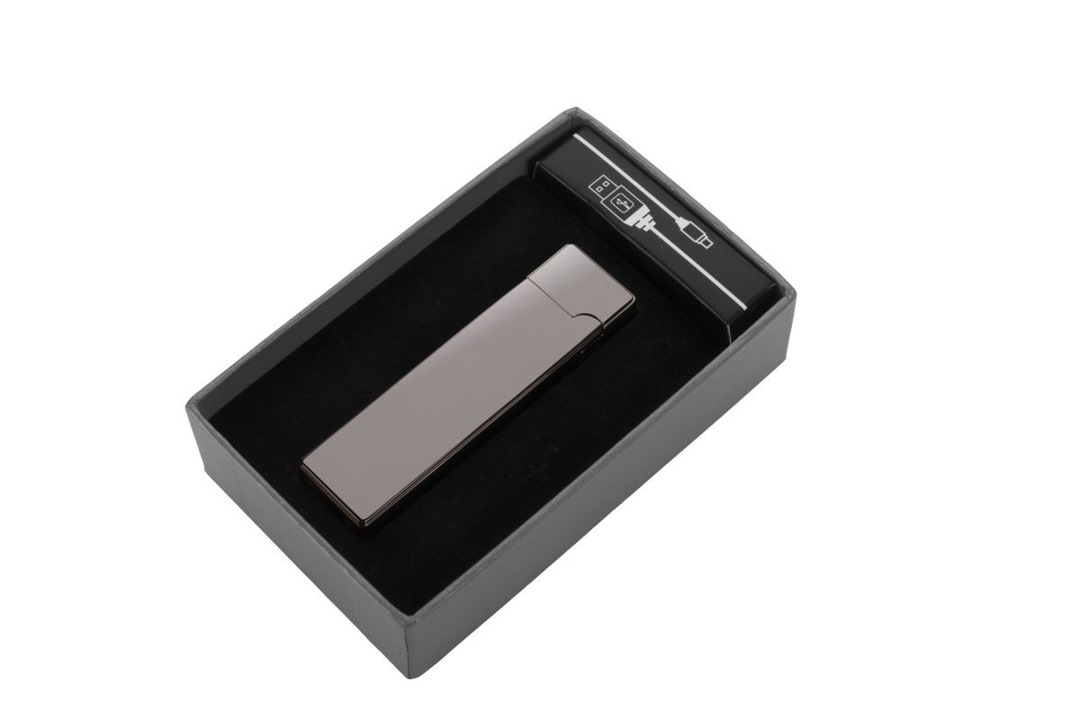 Wiederaufladbares elektrisches Pierre Cardin Feuerzeug in der Farbe gunmetal. Das Feuerzeug hat eine glatte, glänzende Oberfläche und ein elegantes Design. Aufgeladen wird es per USB-Kabel, das im Lieferumfang enthalten ist. Das Feuerzeug hat einen Akku mit einer Kapazität von 170 mAh und eine Ladezeit von 1–2 Stunden. Es ist verpackt in einer luxuriösen Pierre Cardin Box und wird mit einem Pierre Cardin Echtheitszertifikat ausgeliefert.Empfohlene Veredelungstechnik: Lasergravur L1Maximale Veredelungsgröße: 3 x 1,2 mmAbmessungen:Feuerzeug 2,2 x 8,1 x 0,8 cmVerpackung 12 x 7,5 x 3,1 cm