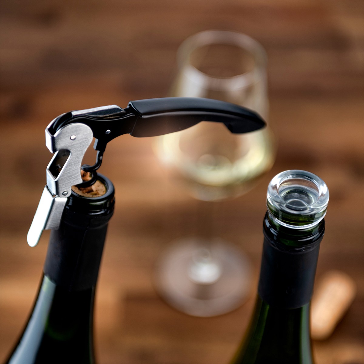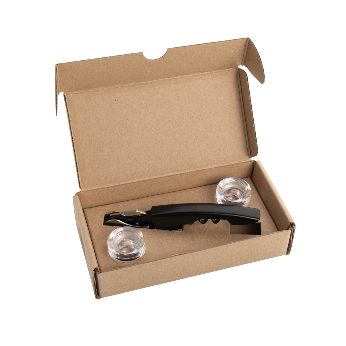 Dieses Weinset enthält zwei Glasstopfen in zweiGrößen und einen hochwertigen Metallkorkenzieher.Die Stopfen sind für Standardflaschen mit einemSchlitzdurchmesser von 17,5 und 18,5 mm geeignet.Verpackt in einer Vanilla Season Geschenkbox.Empfohlene Veredelungstechnik:Lasergravur L1 am KorkenzieherMaximale Veredelungsröße: 20 × 7 cmMaße: Korkenzieher 12,7 × 2,3 × 1,2 cm,Stopfen O 2,9 × 3,1 cmVerpackung: 16,2 × 8,1 × 3,6 cm